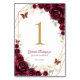 Burgundy Gold Floral Quinceanera Table Number