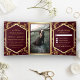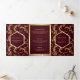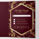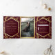 Burgundy Gold Flourish Swirl Wedding Photo Tri-Fold Invitation