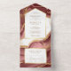 Burgundy Gold Foil Abstract Fluid Ink Wedding All In One Invitation
