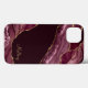 A stylish elegant case for your iPhone features a pattern of burgundy agate with gold glitter. Personalise with your name in a coordinating gold font.