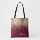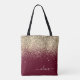 Burgundy Gold Glitter Girly Monogram Glam Tote Bag