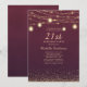 Burgundy Gold Glitter String Lights Formal 21st Invitation