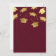 Elegant graduation party invitations featuring a burgundy background, falling faux gold mortarboard caps, and a modern text template that is easy to personalise.