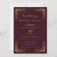 An elegant customisable burgundy with gold ornate lace surprise 40th birthday dinner invitation.