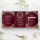Burgundy Gold Leaf Branch All in One Wedding Tri-Fold Invitation