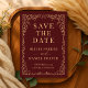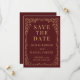 Announce your wedding with this elegant burgundy and gold minimalist Save the Date card. The rich wine background and refined gold detailing create a warm, luxurious look that coordinates beautifully with classic wedding stationery. Clean typography and a timeless layout make this design clear, modern, and fully print ready for your guests.