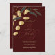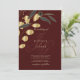A chic gold monogram initials with stylish elegant burgundy, black, and gold leaves floral wedding invitations. This simple gold foliage wedding invitation is perfect for any classy sophisticated chic girl. This design is ideal for a trendy and elegant party event. Customise this design with your message and personalised information. All designs are printed.