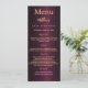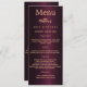 Birthday party menu card for both him and her. Personalise and add a name, age, date and the menu. A burgundy gradient background. Golden coloured letters.