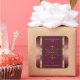 Make a lasting impression with this luxury and modern product label design featuring shimmering gold ornaments on a burgundy coloured background with glitter borders.