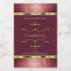 Make a lasting impression with this luxury and modern product label design featuring shimmering gold ornaments on a burgundy coloured background with glitter borders.