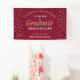Burgundy and gold graduation banner wishing the new grad with gold stars!