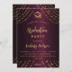 A deep burgundy gradient background decorated with faux gold stars and a cap. Personalise and add a name, party details and year. The text Graduation and the name are written with modern hand lettered style script.
