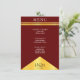 Dark red burgundy wedding reception menu card with gold colour block geometric triangle and stripes. Elegant typography for an expensive look at an affordable price. Customise the meal list and personal details. Great for a modern minimalist wedding theme with a touch of style.