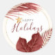 Nautical Boutique Co.'s tropical holiday envelope seals feature burgundy and gold watercolor greenery and is accented with a watercolor starfish on a string. Easily personalise and replace "Happy Holidays" with your own sentiment. The maroon, gold, and creamy ivory are reminiscent of tropical beach holidays. #CoastalChristmas #Beach #MerryChristmas