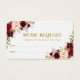 Watercolor Floral Burgundy Marsala Gold Wedding Music Song Request Insert Card - Gold Text