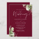 Burgundy Greenery Leaves Monogram Wedding Invitation