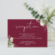 This elegant botanical greenery leaves wedding details enclosure card can be personalised with your information in chic typography on a burgundy background. Designed by Thisisnotme©