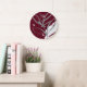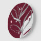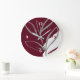 Burgundy & Grey Minimalist Watercolor Leaves Large Clock