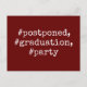This straightforward design gets right to the point. In a friendly typewriter font, I've placed "#postponed", "graduation", and "party" in the centre of the front. Maybe you'd like different hashtags. Awesome! Change them! On the reverse is a more traditional setup with additional fields for a variety of important details. Change any of these as you see fit. You may also change font and background colours if you wish.