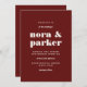 Beautifully rich burgundy wedding invitations featuring chic, modern font pairings in ivory white. The bold contrast brings a level of elegance to your day, whether its a formal black-tie affair or a cozy, winter gathering.