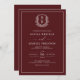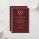 Burgundy Leafy Crest Monogram Elegant Wedding Invitation