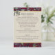 The burgundy wedding information features watercolor botanical artwork of flowers and foliage, and gold frame.. Customise the text to suit your event.