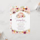 Add a touch of elegance to your fall celebration with this stunning Burgundy Little Pumpkin Baby Shower Invitation. Perfect for a baby girl, this design features a soft peach pumpkin at the centre, beautifully surrounded by rich burgundy, blush pink, and warm orange florals with fall leaves. Coordinating floral arrangements also decorate the top and bottom of the invitation. Whether you're planning a cosy autumn gathering or a sophisticated shower with a floral theme, this invite captures the warmth and beauty of the season. BBS474