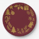Burgundy Luxurious Gold Wreath Classic Christmas Paper Plate