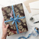 Burgundy Marble Sparkly Black Floral Gold Faux Wrapping Paper