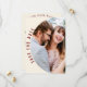 Elegant maroon burgundy and red photo minimalist wedding save the date card with botanical wreath, simple and classy fall wedding save the date invitation. Great for modern classic wedding, vintage wedding and formal wedding. Explore full collection for matching items. Click the edit button to customise this design.The design features photo of couple in the front and botanical wreath at the back with photo