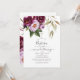 Burgundy and peach peony watercolor baptism invitation with accents of violet and elegant handwriting typography.