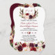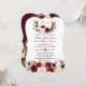 Burgundy Marsala Floral Antlers Monogram Wedding Invitation