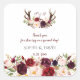 Burgundy Marsala Floral Antlers Monogram Wedding Square Sticker