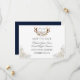 Unique and Elegant Pink White Roses Bouquet design. It features gorgeous watercolor antlers with white, pink roses bouquet, two corner bouquets with the same roses, all on a white background. On the back a rich navy blue background, arrows with hearts, flowers and bride and groom initials. Add your information. For matching items, please, visit my White Roses Antlers Collection.