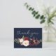 Burgundy Marsala Floral Black Small Navy Thank You Card