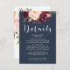 Dreamy meets rustic with this floral burgundy and navy wedding details card. Add your own wording into the template. This card is part of our 'Amelia & Ryan' range - check the full range out in our store!