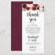 This is the Modern Rustic Burgundy Marsala, floral,, in Black font, Place Setting Thank You Cards. Share the love and show your appreciation to you family and friends, when they sit down at their seat and read this personalised charming thank you place setting card. It's a wonderful way to kick off your special day celebration!