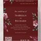 Burgundy | Marsala Red Floral | QR Code RSVP All In One Invitation