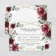 Design features a printed gold coloured geometric frame with floral elements in shades of burgundy, red and blush over greenery, eucalyptus and flower blooms. Design also features an easy to use typography layout.