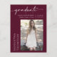 Yay! She finally graduated from school either from high school, college/university, tech school, or a graduate program so now it's time to inform family and friends that she did it! Celebrate one of her life's precious moments and send out this graduation announcement postcard. This postcard features elegant modern minimalist graduation announcement featuring a beautiful calligraphy script on a burgundy background and the graduate's photo. Just customize and replace the text and photo in the personalization box.