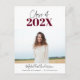 burgundy modern script graduation photo class of announcement. Modern on trend script text. Part of a collection.