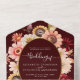 Burgundy Moody Fall Floral Gold QR RSVP Wedding All In One Invitation