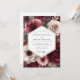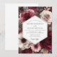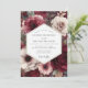 This design features a dramatic arrangement of deep burgundy and creamy white blooms. The rich, painterly florals evoke a sense of dark romance and opulent beauty for a memorable occasion. Peonies and anemone-like flowers are prominent within this artful composition.