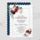 Burgundy Navy Blue Floral Frame Holy Communion Invitation