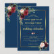 Burgundy Navy Blue Floral Golden Frame Wedding Invitation