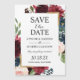 Burgundy Navy Blue Floral Save the Date Magnetic Card
