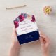 These "Burgundy Navy Blush Rustic Chic Floral RSVP All in One Invitation" are designed with an easy-to-tear-off perforated RSVP postcard. Just simply fold each card into the outlined shape, and then seal and send - no envelope is needed for shipping.