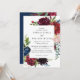 This elegant navy and burgundy floral all-in-one wedding invitation is perfect for a spring or summer wedding. This all-in-one invitation is a trending, eco-friendly option that includes the RSVP information and additional details on the back of the card to save paper and trees. Simply include your wedding website on the back of the card and have your guests access your wedding website to RSVP and view other details.
