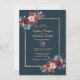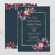 Burgundy Navy Floral Gold Frame on navy Wedding Invitation