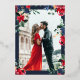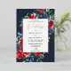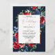 A rustic fall winter elegant burgundy and navy blue floral watercolor , real rose gold foil border and greenery leaves calligraphy wedding invitation , add your photo. With a beautiful brush calligraphy script.